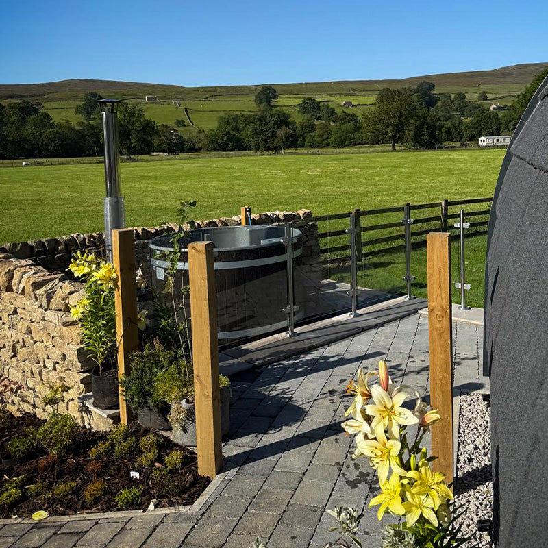 Why not soak up the view in your very own log fired hot tub adjoining two of our Mega-Pods