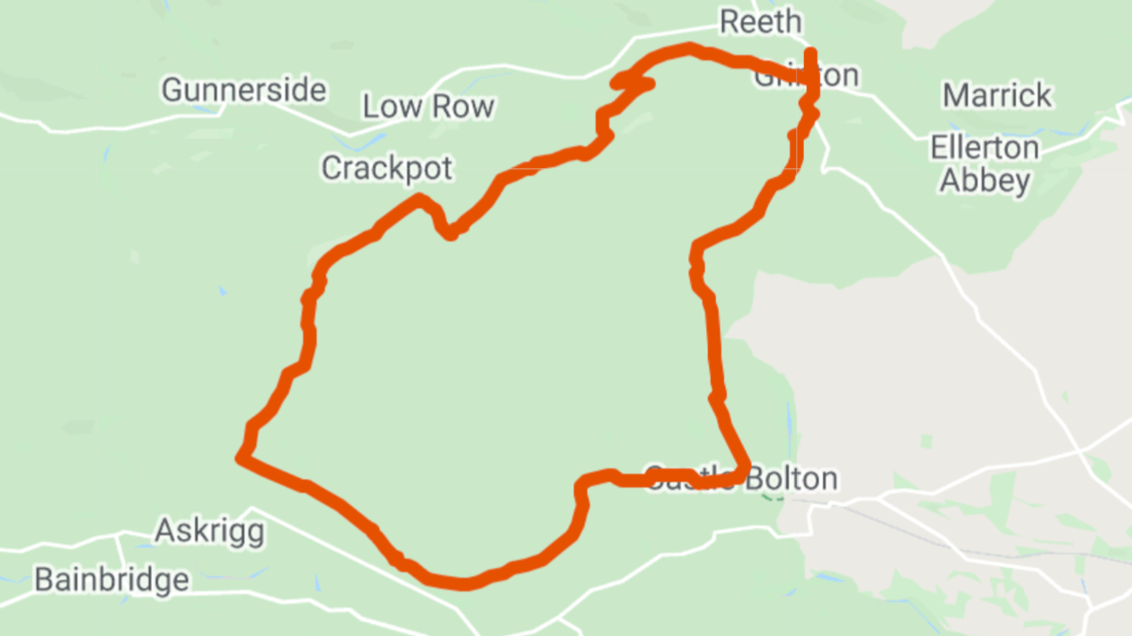 A stunning ride. Not much warm up before tackling 'Height of Greets' climb. Drop into Castle Bolton, Wensleydale then the steep ramp back to Swaledale!