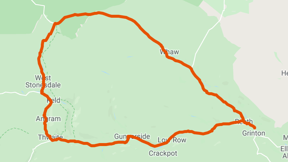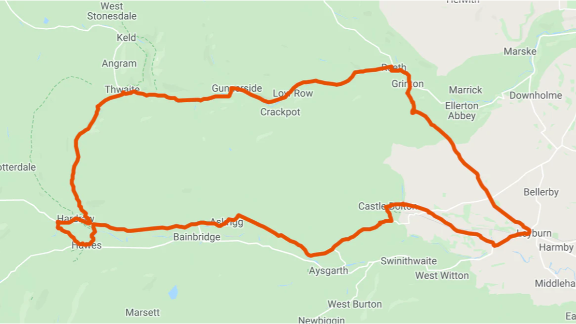 Great loop taking in Tan Hill, a blast down Wensleydale before final climb up Greets Moss.